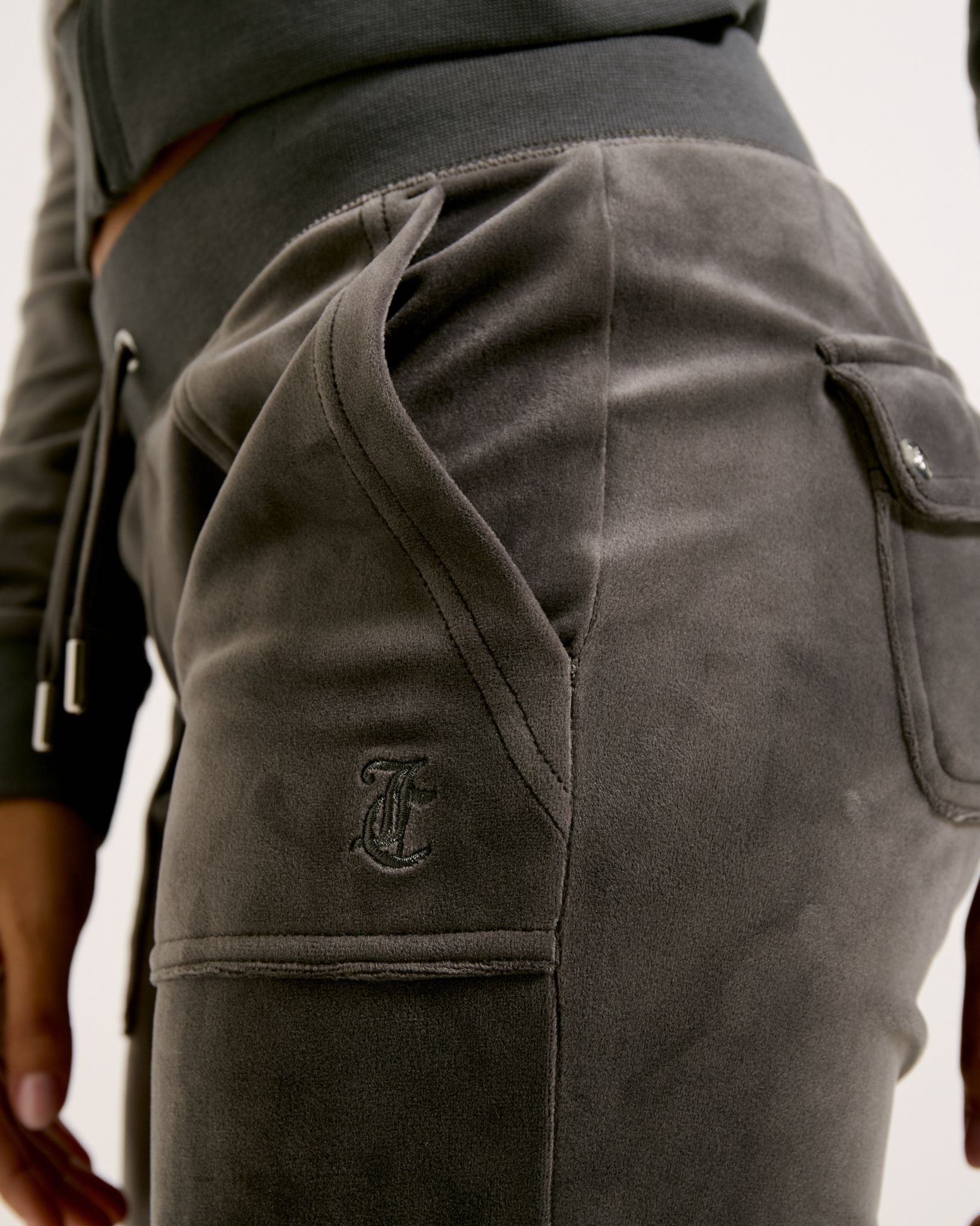 Back by popular demand, our low-rise tracksuit bottoms in classic velour. These Juicy Couture pants have a flared led, with adjustable drawstring ribbed waist and with the iconic Juicy Couture back pockets.